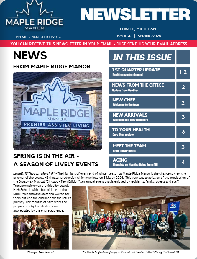 Welcome to Maple Ridge Manor, a 54-room residence nestled in the heart of Lowell and Manistee, Michigan. As a family-owned facility, we take pride in offering a comforting home for your loved ones who require extra care and support.